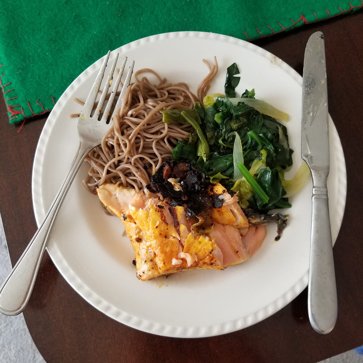 Sur la première photo d’un de mes régals : du gruau avec du beurre d’amandes, de la protéine et du yogourt grec. Pour le second plat : du saumon grillé à l’herbe de Provence, au sirop d’érable et au vinaigre de cidre de pommes… Sur un lit de légumes et nouilles soba!